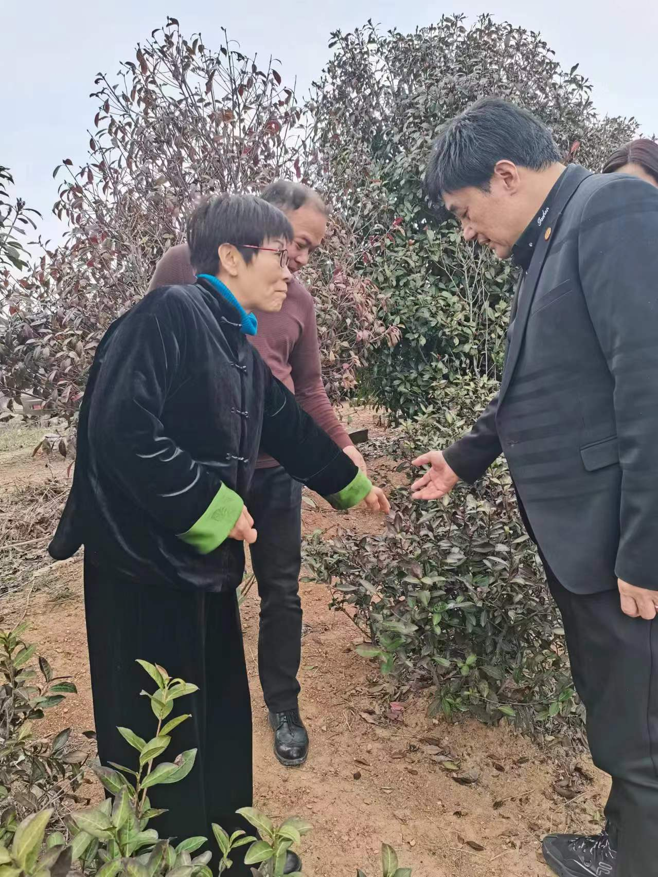在茶叶基地,薛兵旺和鄢向荣现场查看了茶叶生长情况,了解了茶园管护情况和茶叶行业的发展现状,并针对茶园当前存在的问题提出了具体可操作性的建议。周宇和乐军针对企业研学、农旅和文旅融合提出了宝贵的意见和建议,并希望双方下一步有实质性的合作。