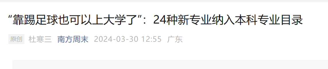2024年3月19日,教育部公布了2023年度普通高等学校本科专业备案和审批结果,并发布2024年普通高等学校本科专业目录。包括马术运动与管理、足球运动、咖啡科学与工程在内的24种新专业,正式纳入本科专业目录。