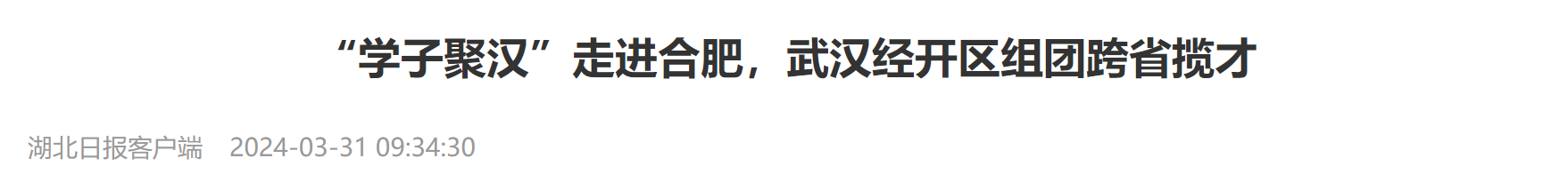 据统计,本次合肥之行共收到简历612份,初步达成意向217人。继江汉大学、武汉大学等高校招聘会后,下一步,武汉经开区还将走进武汉外语外事职业学院、武汉铁路职业技术学院、湖北国土资源职业学院招才揽才,吸引更多青年人才投身经开区建设。