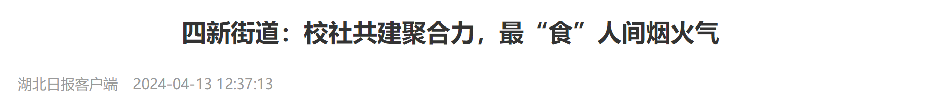 此次荆楚饮食文化体验活动的开展,不仅为社区居民带来了美食享受,更让健康成为了他们的生活伴侣。今后,四新街道社区新时代文明实践站将继续深化“武汉以我为荣”主题活动,加强校社结对共建,让更多的新时代青年参与社区治理,提升社区活力,助推社区治理提质增效。