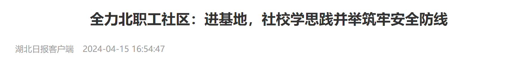 近年来,全力北职工社区不断强化管理,稳步推进国家安全工作,为了把安全教育落到实处,社区成立安全教育宣讲团,每年走进辖区企业、高校开展消防安全、食品安全、防诈骗、防溺水等安全教育宣讲40余场,并组织企业、高校、物业共同践行学习成果,完善社区安全工作。全面落实隐患排查治理措施,进一步加强应急救援和事故防范工作,切实保障社区职工、居民的生命财产安全。