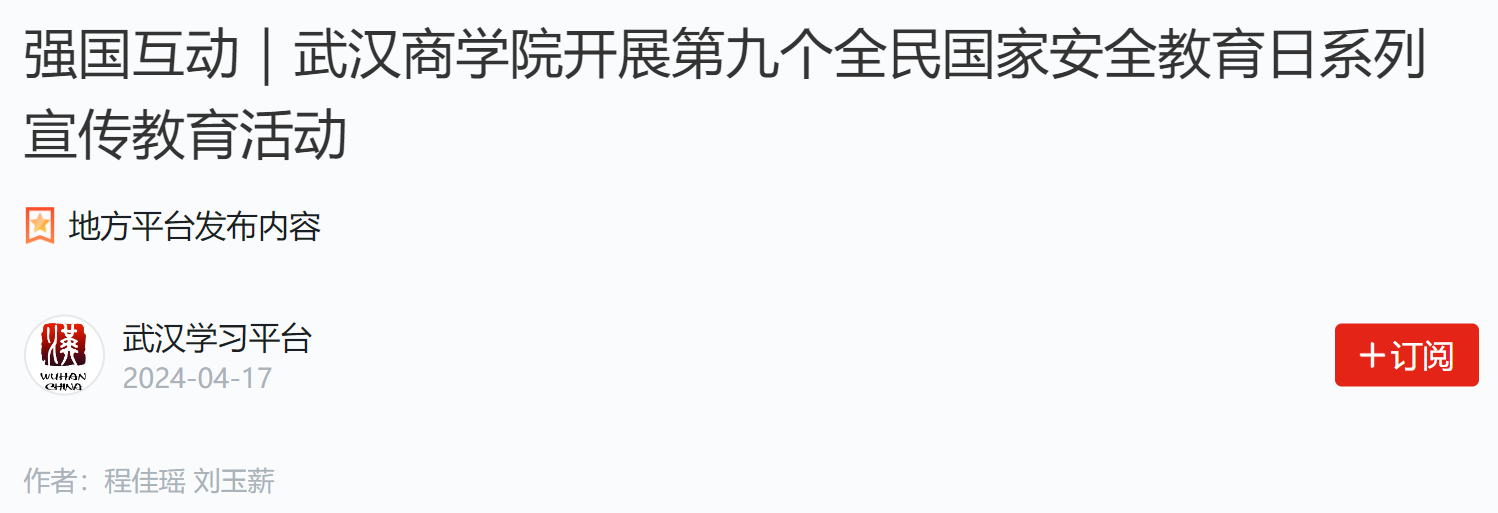 同时,学校建成pg电子中国官方网站国家安全主题教育园,获批武汉市第三批市级国家安全示范教育基地。