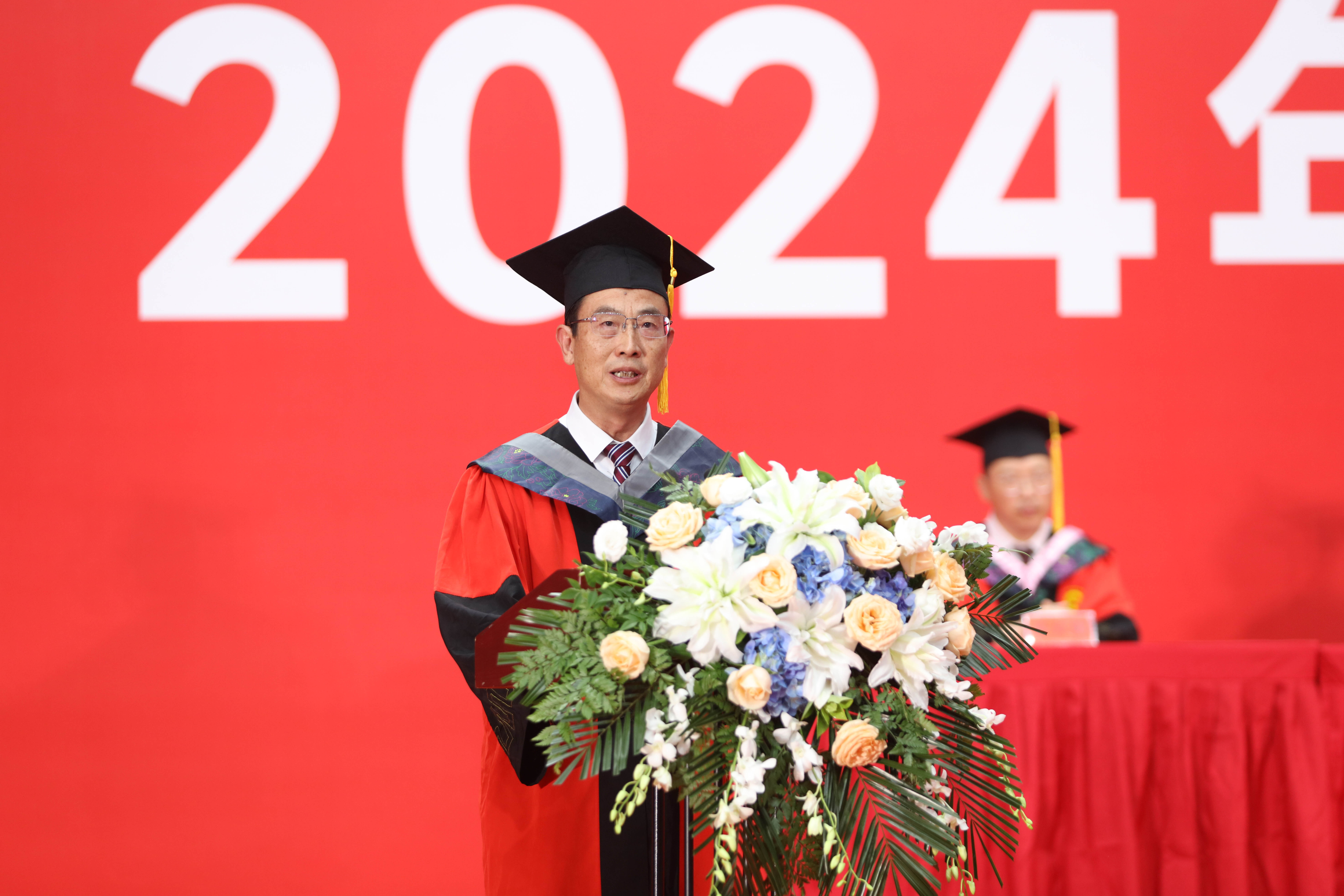 全体校领导、职能部门负责人、各学院班子成员、教职工代表、2024届全体本科毕业生到场。副校长梅德高主持。