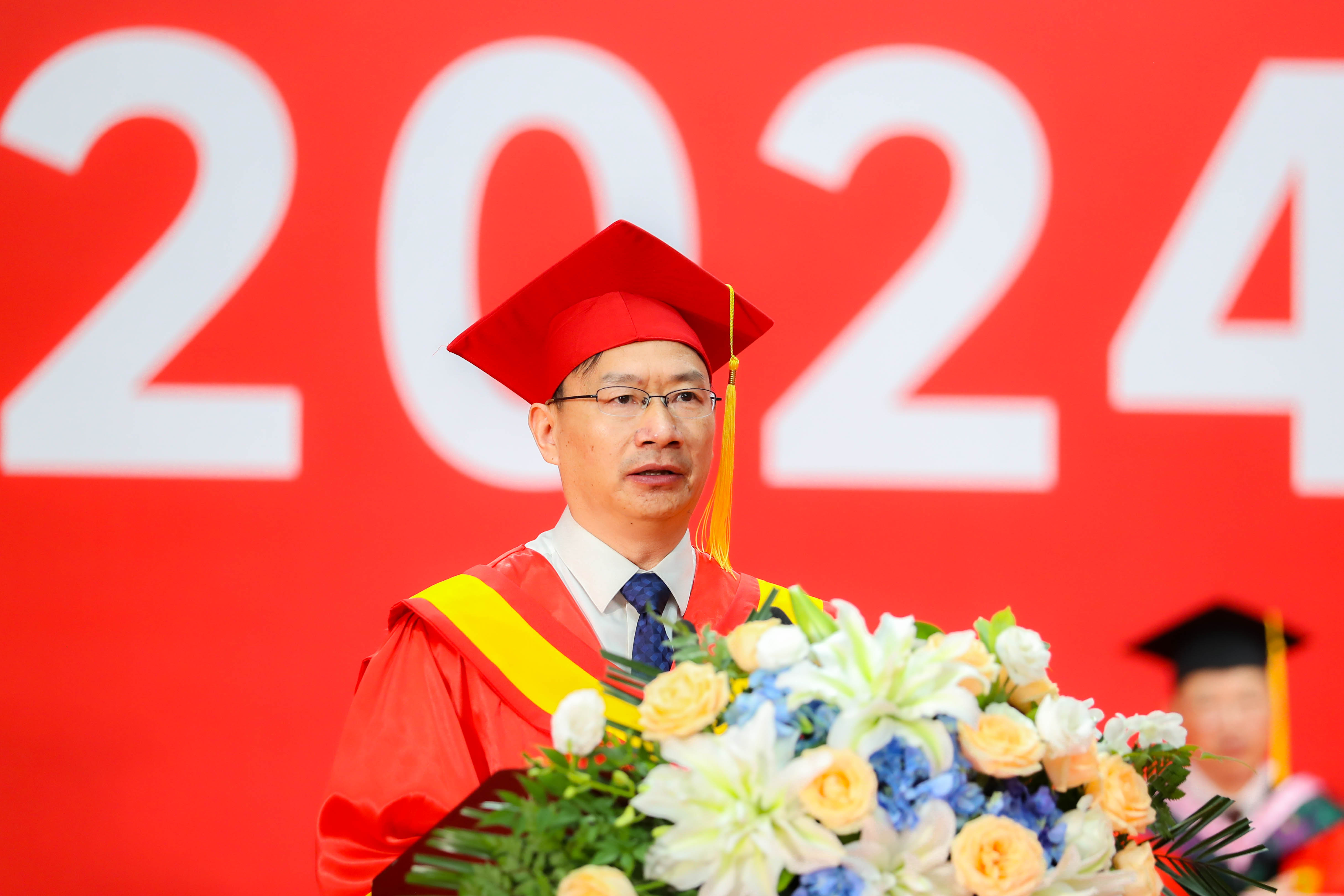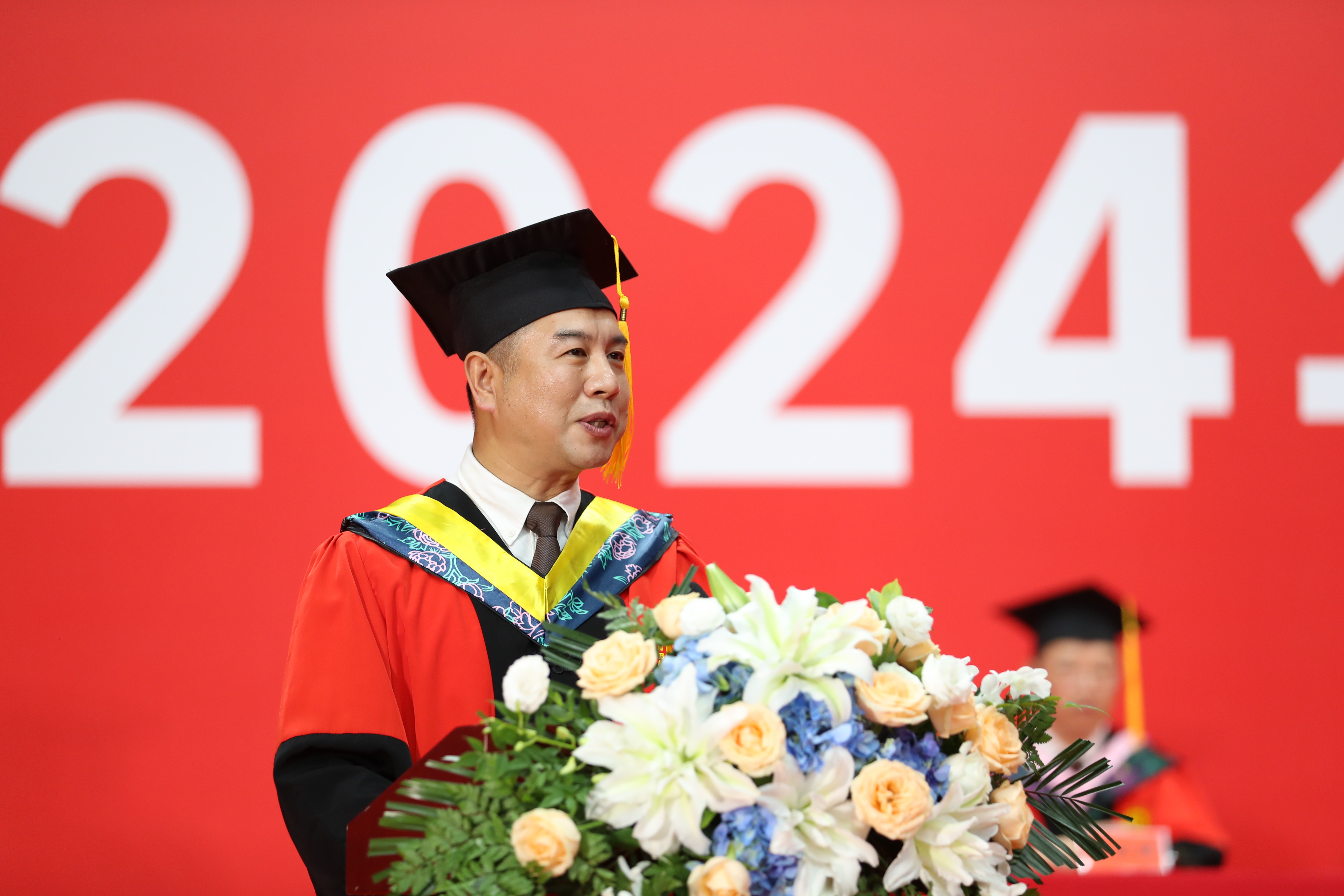 毕业典礼上,校长彭瑜以《追随青春之梦奔向崭新未来》为题进行讲话,寄语毕业生要“谦虚乐学、敢于挑战、心怀感恩”。彭瑜说,从今天开始,大家即将踏上新的人生征程,迎接更加广阔的天地和更加严峻的考验,作为新时代大学毕业生,如何发挥自己的优势,实现自我价值与社会价值相统一、个人理想与家国梦想相交融,进而为推动社会进步、国家富强添砖加瓦?是每一个人都需要深入思考的问题。