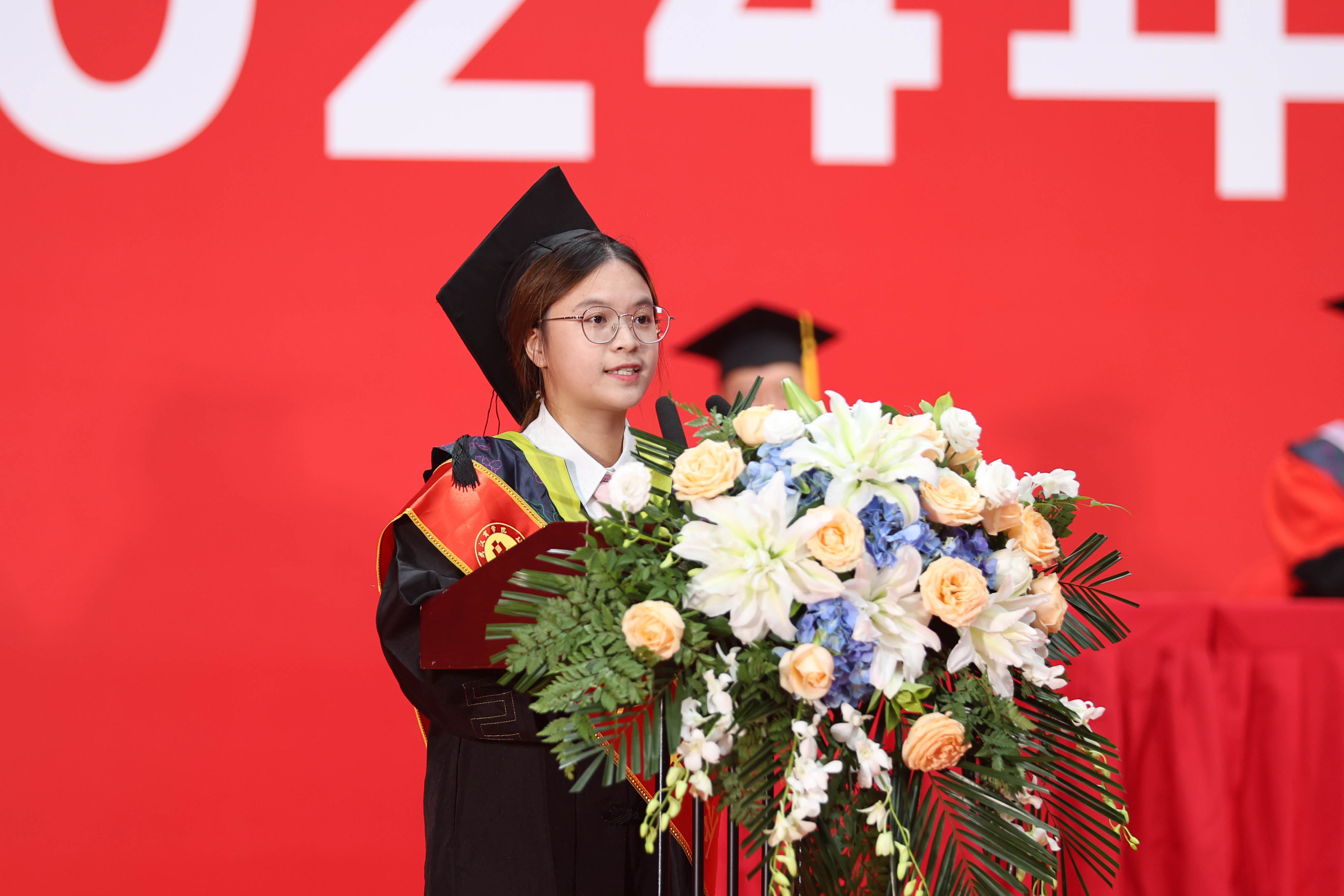教师代表、机电工程学院院长姚层林教授寄语毕业生,希望大家能从容地面对困难,能坚强地面对失败,能甘于简单的快乐、内心的宁静和平凡的幸福,更希望大家在热情中开始、在执着中奋进、在美好中迎接成功、在比较中学会思考。学生代表、信息工程学院毕业生舒紫嫣分享了自己大学四年的成长与感悟,尤其是自己身处困难时,老师和同学给予自己的帮助,让人十分动容。