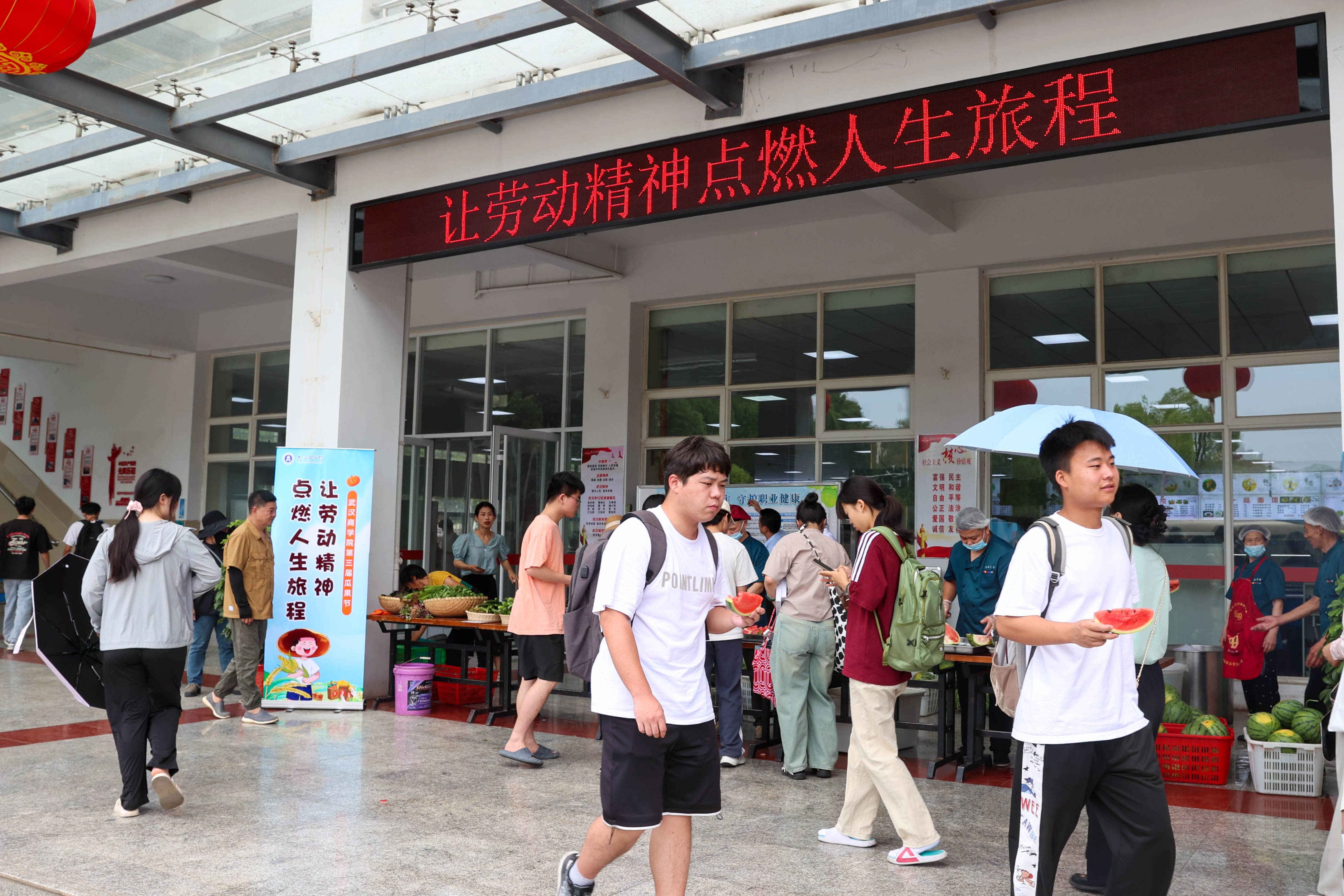 本网讯 “学长,别着急,吃块瓜,再出发吧!”北区食堂门口的一排排桌子上摆满了西瓜、冬瓜、竹叶菜等十余种蔬果,6月18日,由通识教育学院主办、教务处协办的第三届主题为“让劳动精神点燃人生旅程”的瓜果节正式开幕,6000余斤瓜果全部出自劳动教育实践基地,3171名毕业生将品尝来自母校的学弟学妹亲手种植的“毕业果”,奔向人生崭新的旅途。
