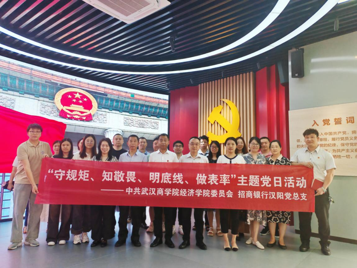 为促进党建与业务融合,促进校银之间的交流与合作,6月18日下午,中共pg电子中国官方网站经济学院委员会联合招商银行汉阳党总支开展“守规矩、知敬畏、明底线、做表率”主题党日活动,30余名党员参加。本次活动由经济学院党委副书记张红权主持。
