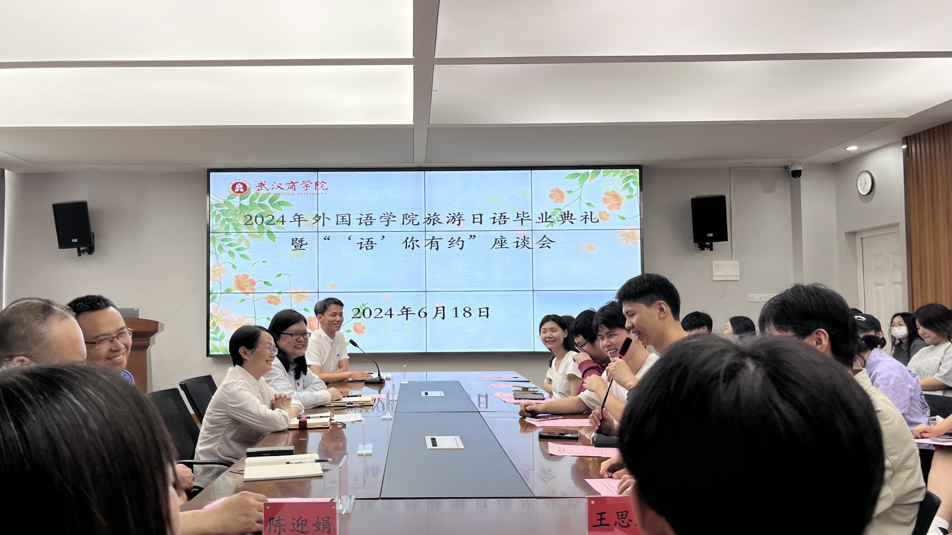 本网讯 6月18日上午,2024年外国语学院旅游日语专业毕业典礼暨“‘语’你有约”座谈会圆满举行本次会议由外国语学院党委副书记尹志洪主持,学院院长李萍、副院长忻竞、全体辅导员及部分教师代表出席。