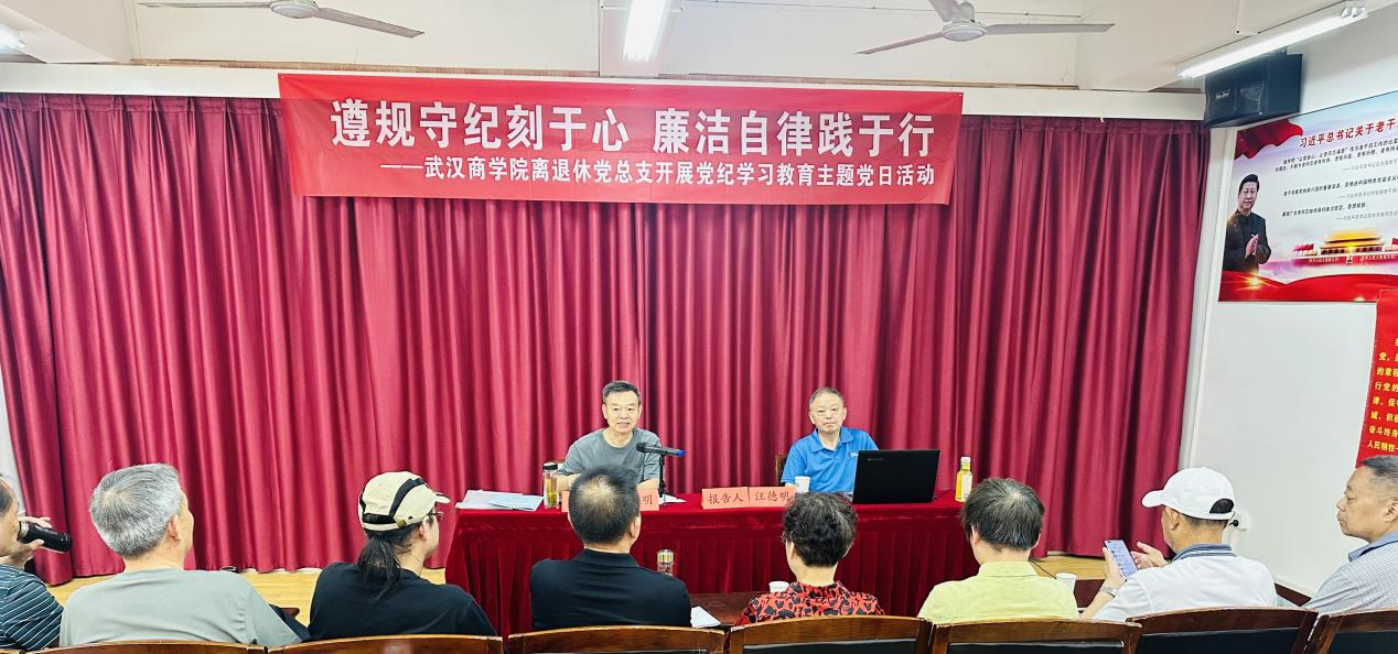 本网讯 为深入学习领悟习近平总书记关于党的纪律建设的重要论述,认真贯彻落实党中央关于在全党开展党纪学习教育的部署和武汉市委老干部局工作要求。6月21日上午,离退休党总支组织离退休党总支成员、离退休各党支部党务工作者、退休党员代表在汉阳五里新村校区老干部活动中心开展了党纪学习教育主题党日活动。此次学习活动,邀请了武汉市委党校原副校长汪德明同志(现任武汉市银发初心党史宣讲团团长、党的二十大精神宣讲团成员,武汉延安研究会副会长)为pg电子官网老党员们讲授党纪学习教育专题党课,学习活动由离退休党总支副书记何跃明同志主持。