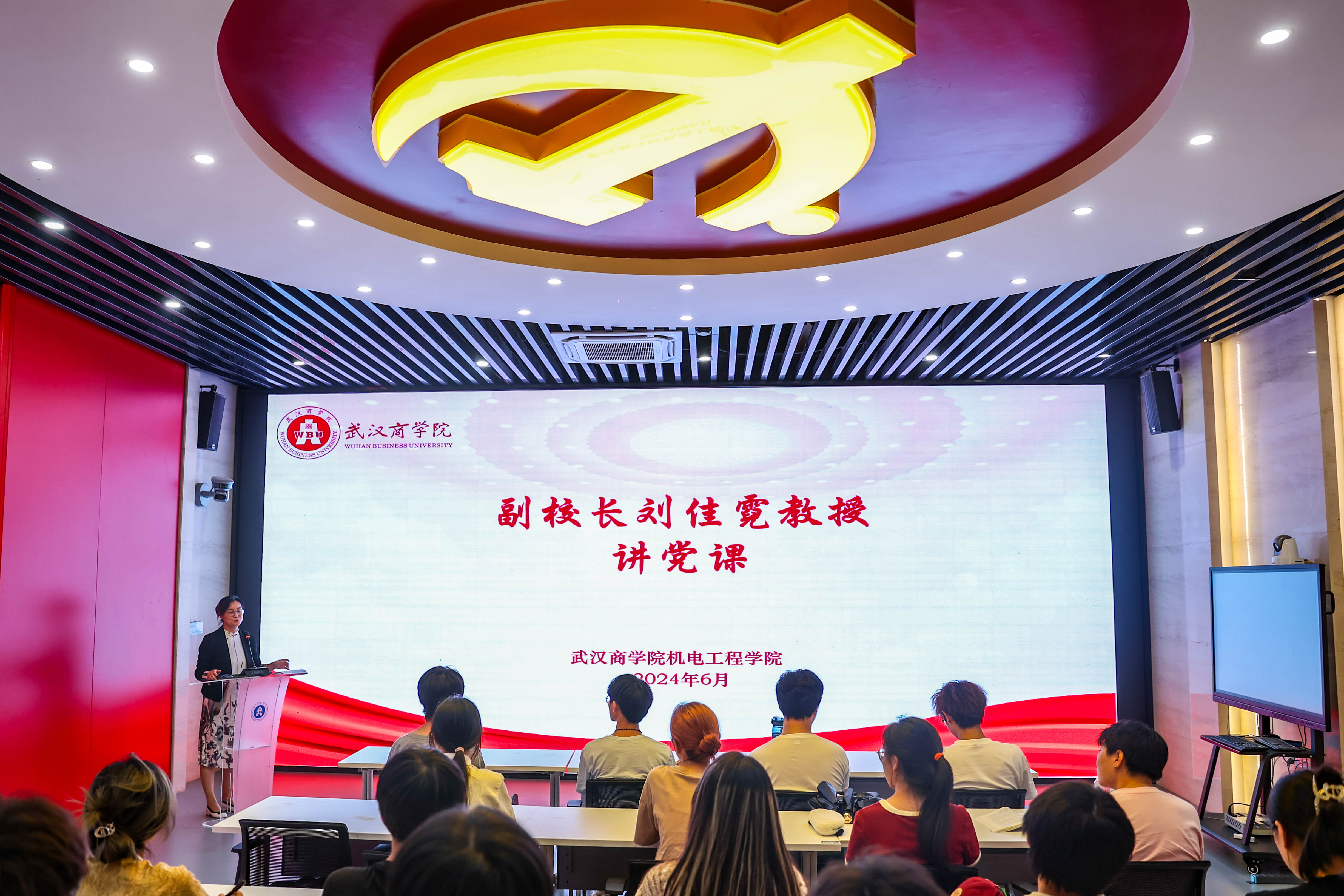 6月21日下午,副校长刘佳霓在智慧党建教育中心,为机电工程学院28名学生讲了一堂题为“汽车专业大学生的时代担当”的主题党课。机电工程学院优秀团干、入党积极分子参加学习。