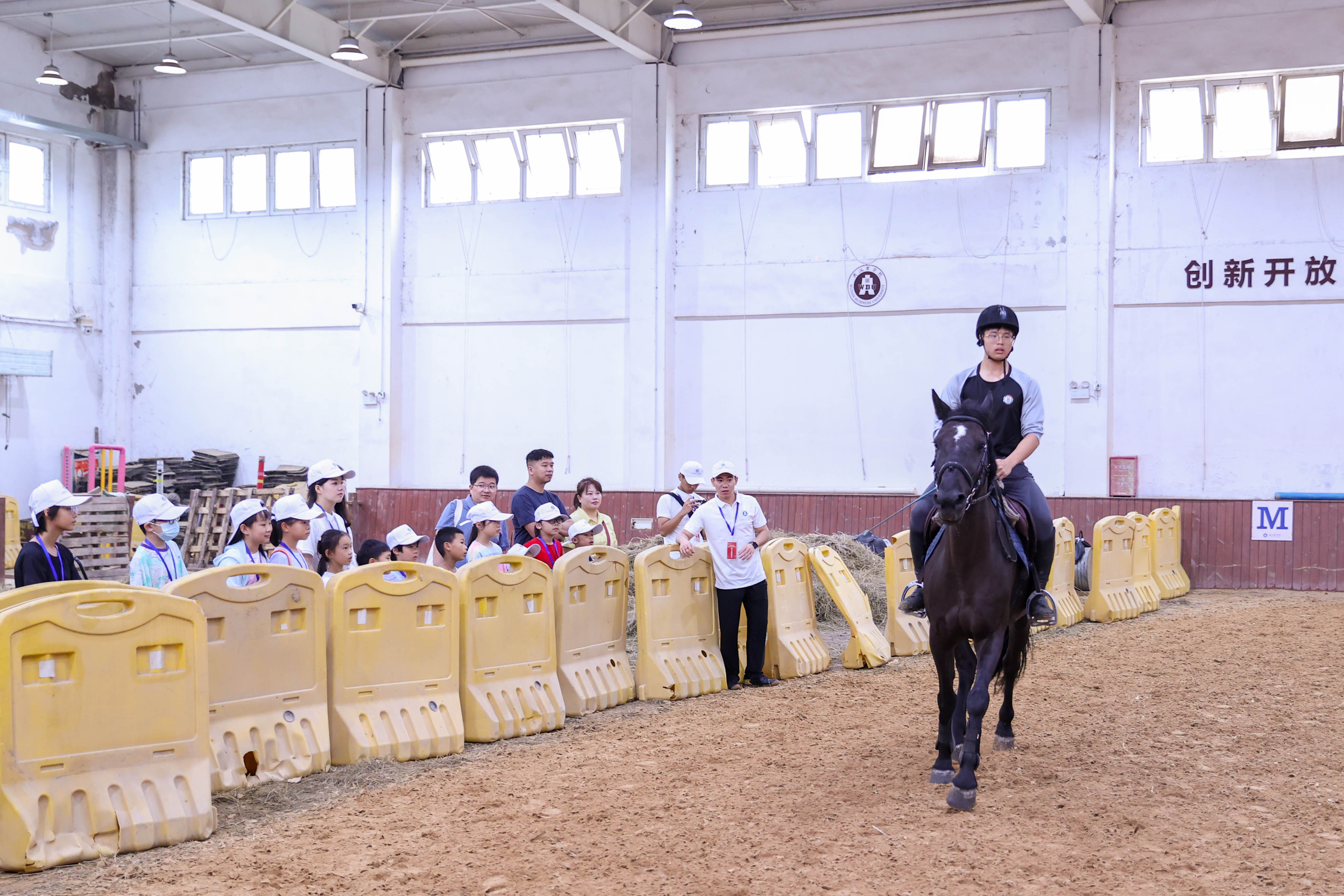 本次研学活动分为马术相关知识讲解、校史馆参观、近距离马匹互动三个部分。“马儿都有哪些毛色?”“马儿除了胡萝卜还吃什么?”在马术趣味小课堂环节,志愿者们通过精心制作的PPT向大家详细介绍了马匹种类、马儿习性、马术比赛规则以及青少年学习骑马的益处等,还通过播放马术比赛的视频,让小朋友们对马术这项运动有了更直观的认识。