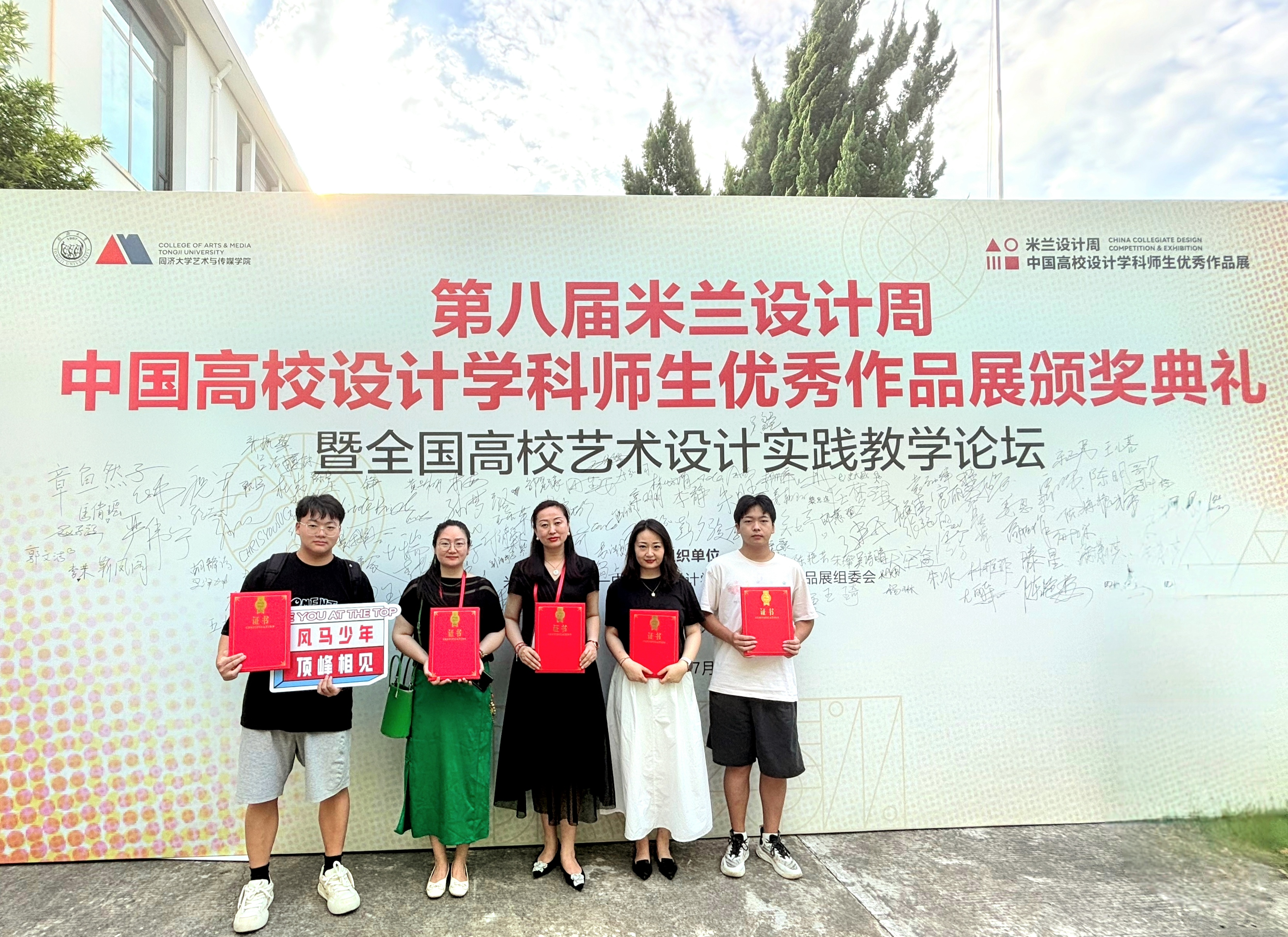 7月27日,第八届米兰设计周-中国高校设计学科师生优秀作品展颁奖典礼27日在上海同济召开,艺术学院副院长周宇带领学院教师刘卫,付园园和两位国一获奖学生赴上海参加颁奖典礼。该项比赛全国共有11311所高校参赛,收到有效作品154861件。艺术学院师生作品获得国赛一等奖1项、三等奖2项;省赛一等奖1项、二等奖1项、三等奖4项的好成绩,周宇获优秀指导老师称号。