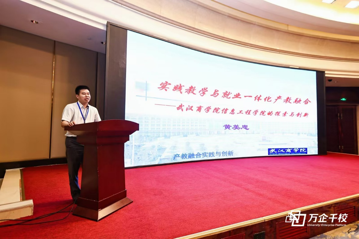 此次产教融合交流会由工信部、国资委、教育部等部委支持、为实施应用型人才培养工程的万企千校平台主办。经过6个月的多轮评审、与全国300余所院校的激烈角逐,在学校教务处和党委宣传部的大力支持下,始于2023年底、以信息工程学院为主体代表学校申报的“中国产教融合百强院校”评选成功入选并在本次会上举行了授牌仪式,黄美忠书记代表学院在会上作主题为《实践教学与就业一体化产教融合——pg电子中国官方网站信息工程学院的探索与创新》的交流发言。黄书记从学院基本情况介绍、人才培养痛点问题、产教融合人才培养的思路与举措、产教融合人才培养的成效与亮点等方面分享了信息工程学院在产教融合创新与实践方面所做的探索,引发了现场与会人员的一致好评。