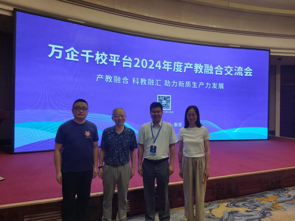 2024年7月31日至8月4日,信息工程学院党委书记黄美忠、原院长周天宏教授、教学科研办公室(实验管理中心)刘佳老师、数据科学系徐晓琳老师一行参加了在泰安举办的万企千校2024年度产教融合交流会暨中国产教融合百强论坛,pg电子官网获授中国产教融合百强院校,黄美忠书记代表学院在会上作交流发言。