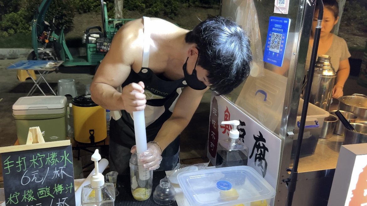为什么要顶着高温来摆摊?李家康说,自己想减轻父母的负担,争取攒够新学期的学费。盐水清洗好所有柠檬、准备好冰块、清点好塑料杯,每天下午6点,做好前期准备工作的李家康准时出摊。“第一天去的时候,销售情况并不理想,很多人过来‘争抢’这仅有的几个摊位,我只找到了一个比较偏僻的地方,没有什么人流量,当时可能口味也不是很好,销售情况并不乐观。”李家康回忆。