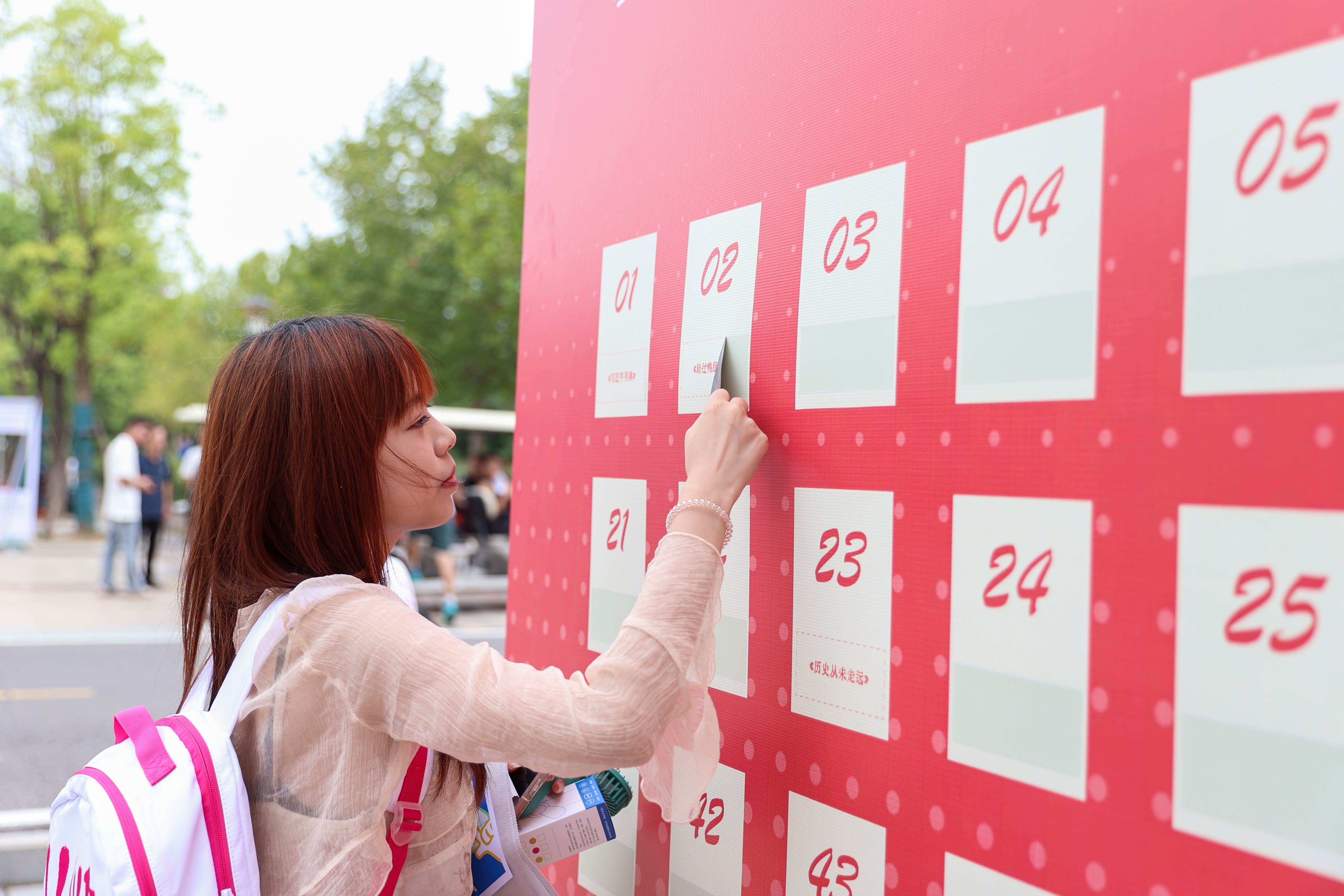 “《党费》!我高中的时候读过。”新生袁必纮选择15号盲盒:“15号是我的生日,我也选到了自己想看的书,入学第一天就获得这样一份礼物我很开心!”100个数字在每一位新生的选择中也给自己选的号码赋予了意义。在数字化、互联网的时代下,学校选择在开学第一天举办这类活动,能够让新生了解到纸质书本之美,从网络阅读回归到最初的原始阅读方式。