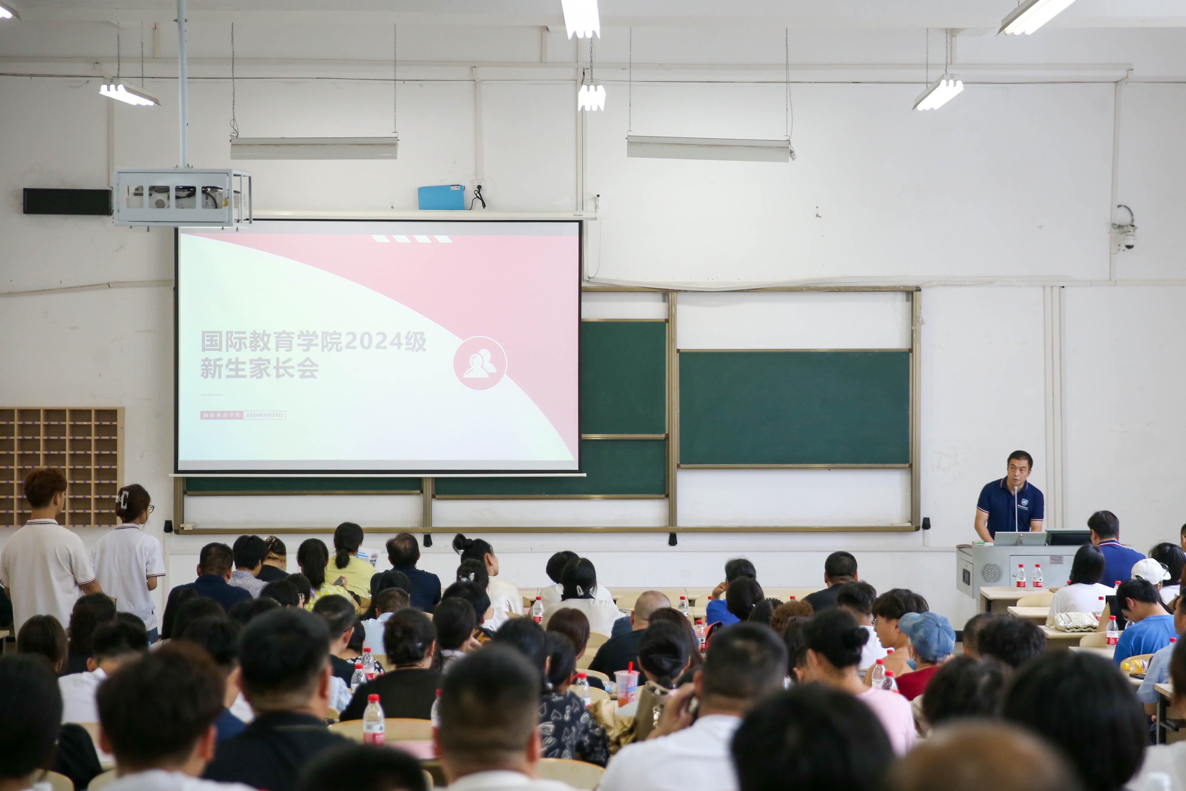国际教育学院在pg电子官网北四118教室召开新生家长会,学院院长李平,副院长邹乐菁,2024级全体学生辅导员堵翌洁以及学院其他相关工作教师出席本次家长会,本次家长会由鲍晓迪主持。