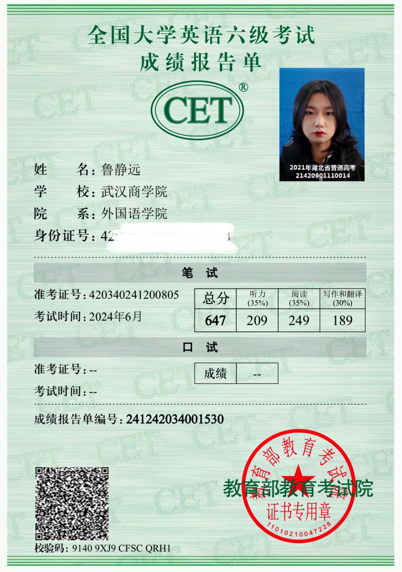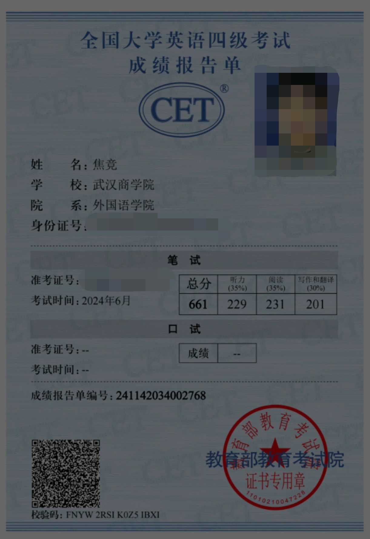 本网讯 在四六级的“武林”中,高手如云,而外国语学院2021级商务英语专业的焦竞和2021级商务英语专业的鲁静远凭借着出色的成绩脱颖而出。近日,四六级考试成绩揭晓,焦竞以661分的优异成绩在四级考试中独占鳌头,鲁静远则以647分在六级考试中拔得头筹。