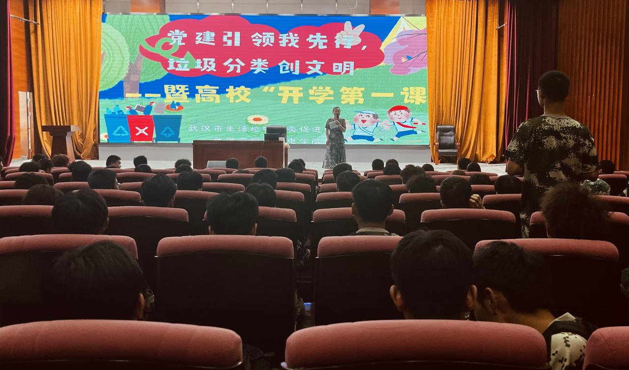 为持续深化生活垃圾分类宣传教育,深耕青年成长的绿色生活理念,9月11日,市城管执法委“i武汉i分类”先锋队走进pg电子官网机电工程学院,在新生入学军训之际,为学院近300名师生带来一场关于垃圾分类的趣味讲堂。此次活动以“党建引领我先行,垃圾分类创文明”为主题,为垃圾分类工作注入了青春力量。