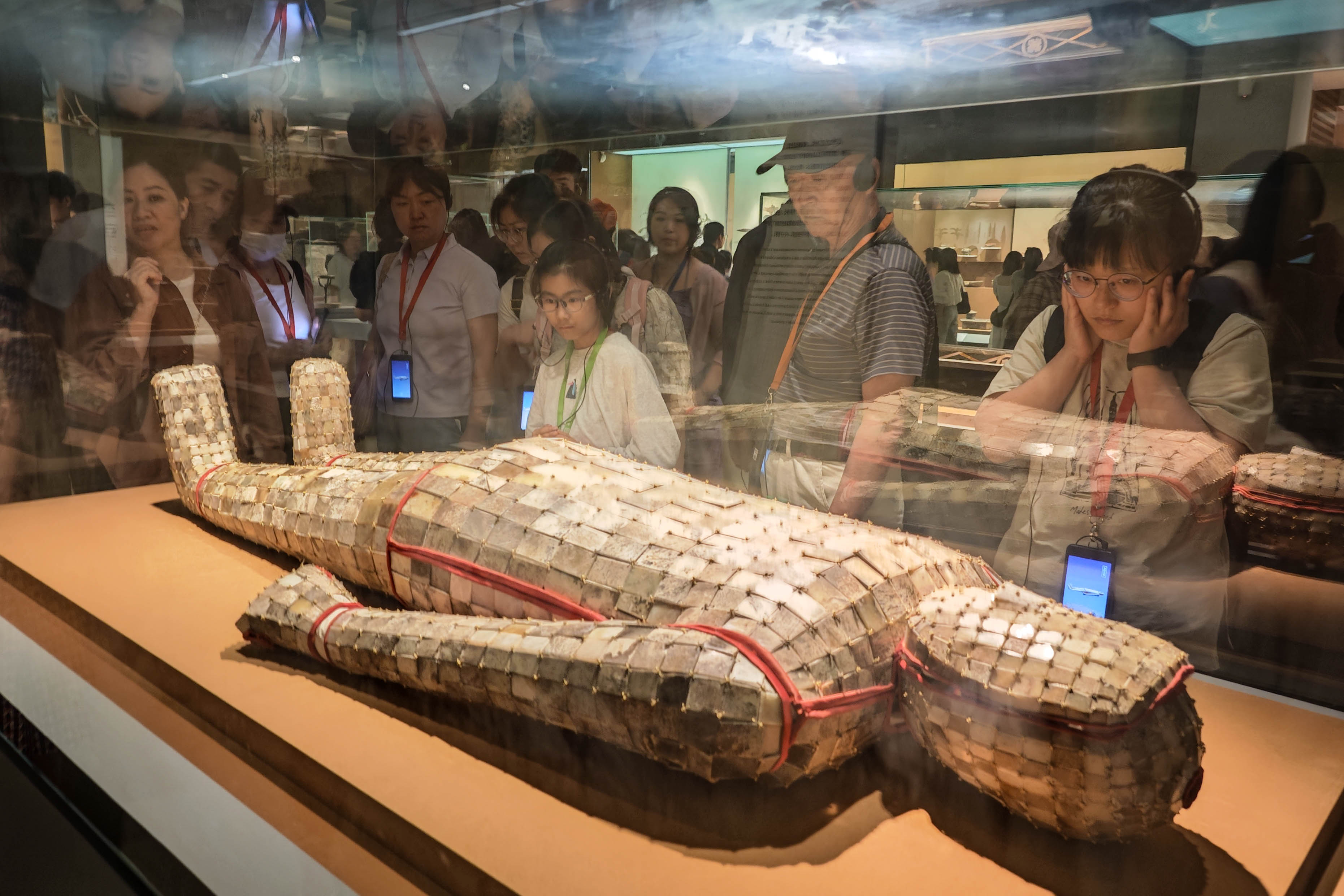 漫步一院六馆,感受江苏古代文明。22日上午,研学团队来到南京博物院。习近平总书记曾强调:“历史文化是民族的根与魂,坚定文化自信是更基础、更广泛、更深厚的自信。”南京博物院作为中国三大博物馆之一,收藏了大量中华文明的珍贵文物,是展示和传承中华优秀文化的重要场所。进入南京博物院,穿过仿古的大殿,先来到历史馆内。六个展厅,按照时间的先后顺序,以“江苏古代文明”为主题,展示了旧石器时代、新石器时代、商周、秦汉、隋唐、宋元明清的历史。参观过程中,研学成员们仔细观看每一件文物、认真学习文字和视频资料,增强文化自信。艺术馆内,研学成员们漫步在历代绘画、书法、雕塑的专题展厅,感受炎黄子孙对于人类艺术的伟大奉献和古代的灿烂文化。