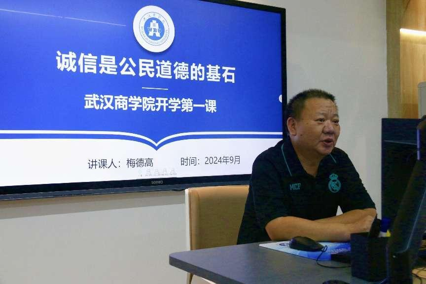 本网讯 9月24日,副校长梅德高在北四智慧教室为会计学院2024级新生讲授主题为“诚信是公民道德的基石”的思政课。会计学院班子成员、辅导员代表及2024级财务管理全体同学参加了此次授课。