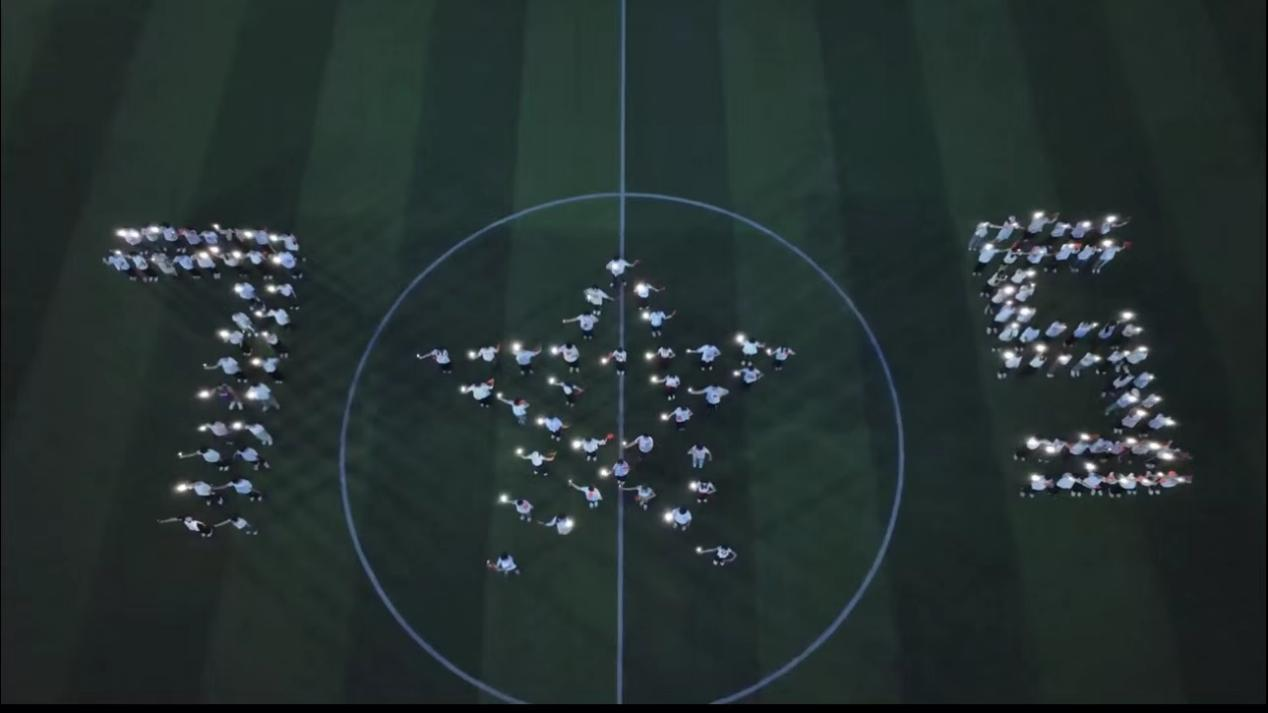 会计学院同学们以独特的创意和饱满的热情,摆成了象征祖国75周年华诞的“7”和“5”字样以及一个巨大的五角星,脸上洋溢着自豪和激动的神情。他们齐声高唱爱国歌曲《我和我的祖国》,歌声嘹亮,充满激情,声音响彻整个校园。他们用自己的声音,诉说着对祖国的深深热爱。在歌曲快结束时,他们齐声高喊“祝祖国繁荣昌盛,国泰民安!”旗帜在他们手中挥舞,现场的气氛被推向了高潮,慷慨激昂的声音响彻了整个校园!