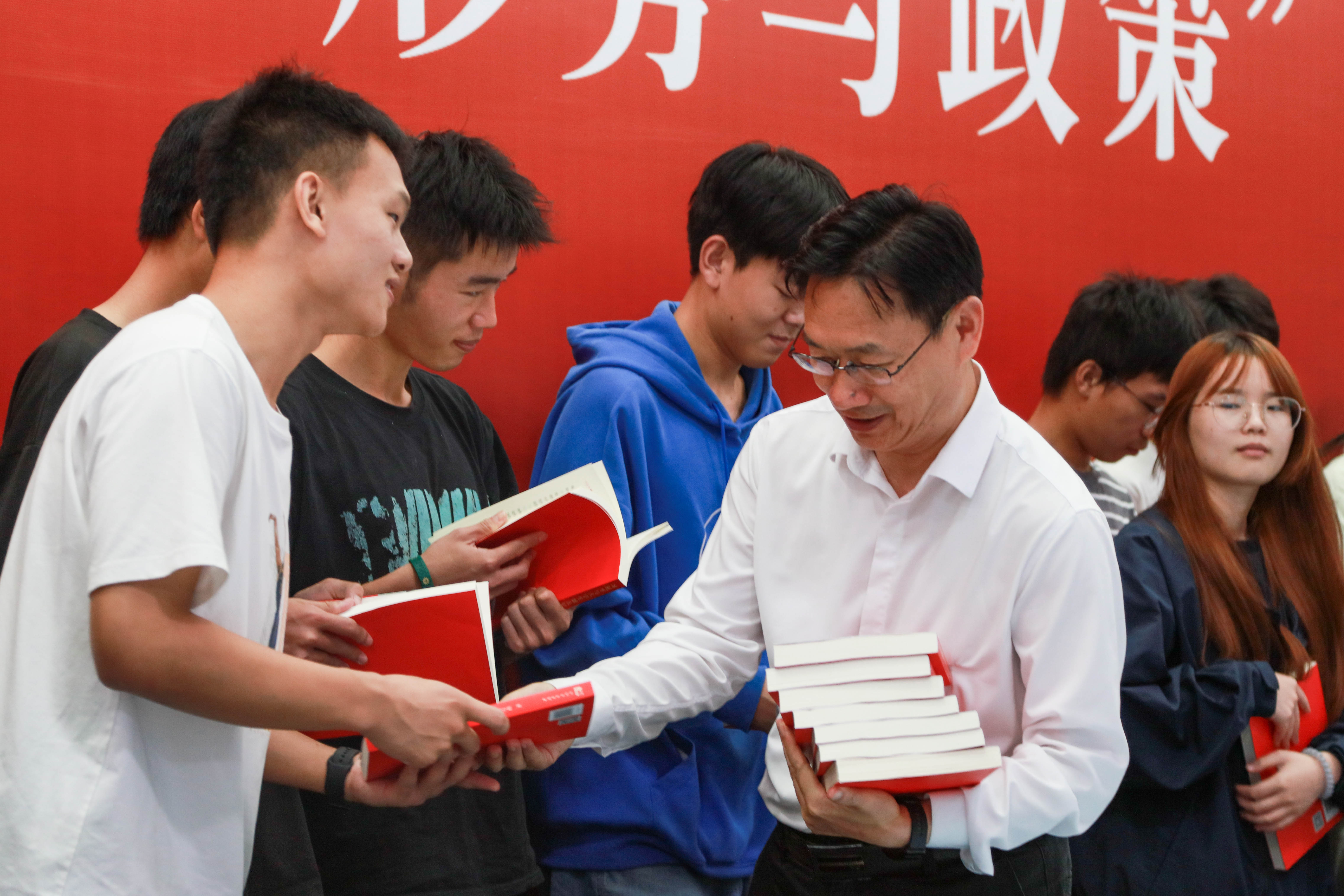 授课结束后,彭瑜为同学们赠书《习近平与大学生朋友们》第二卷并与同学们合影留念。