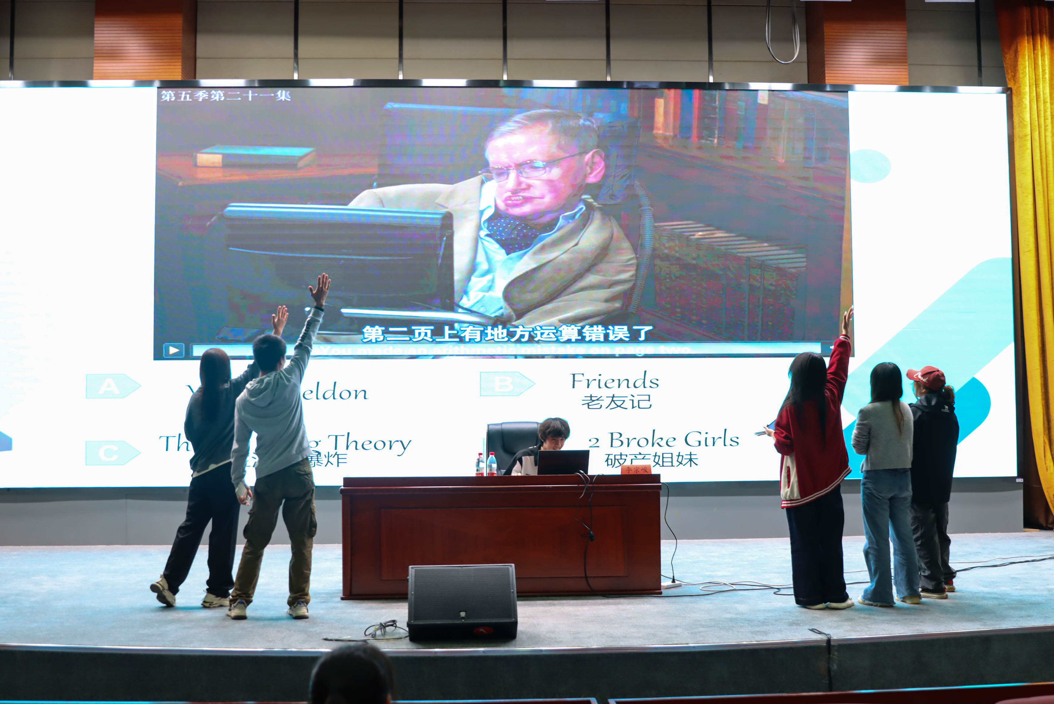 2024级物流管理二班罗芷璇和她的两名小伙伴率先登场,她们三人与另外一组的两名同学对阵。在老师和志愿者的引领下她们屏气凝神地答对了16部电影名。下台后,罗芷璇激动地表示:“今天在这么多人面前勇敢了一次,是一次不错的经历,刚刚大屏幕上播放的电影绝大多数为国外的电影契合我们今天的主题,也让我们的印象更加深刻。”