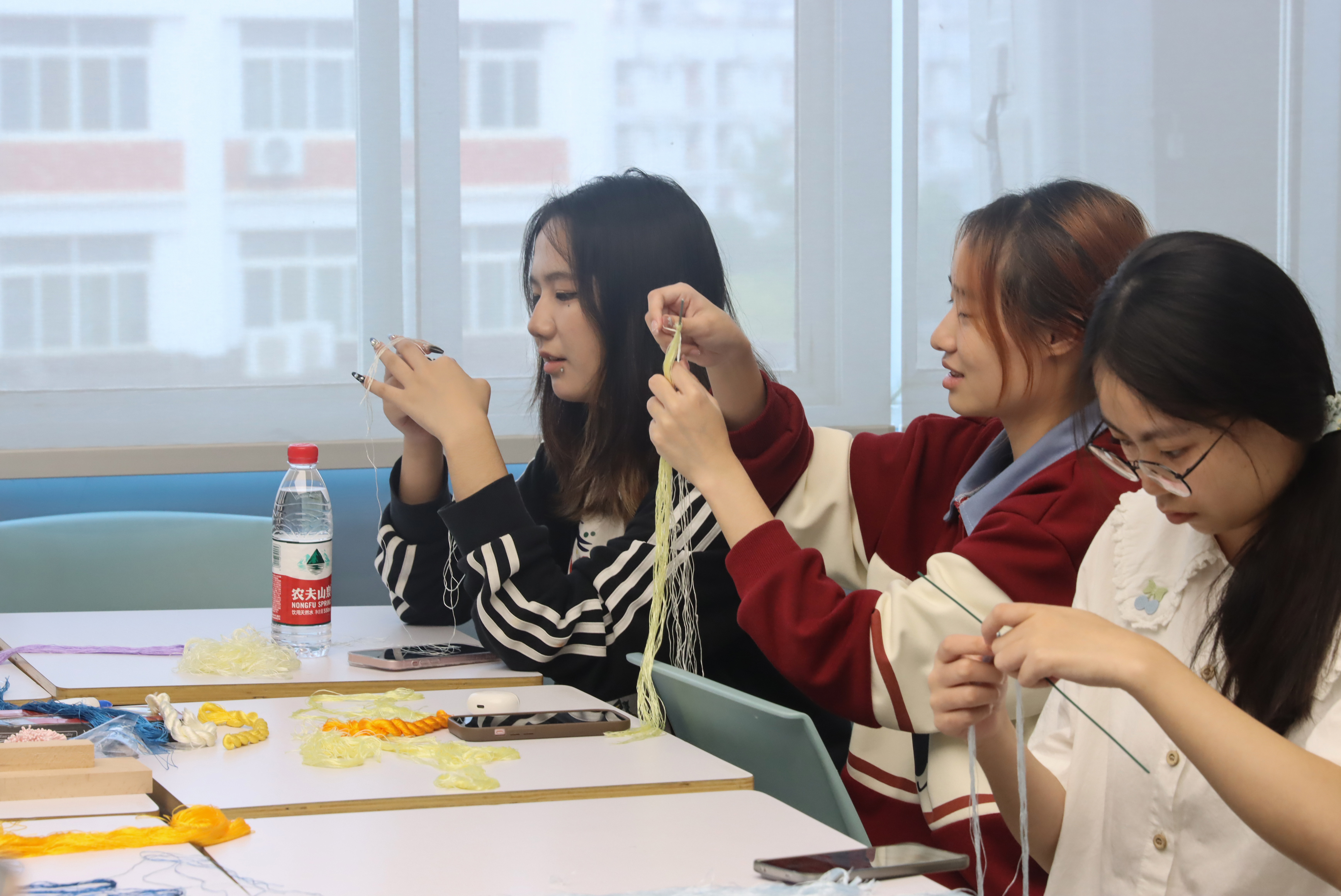同学们体验非遗绒花制作。王灿摄