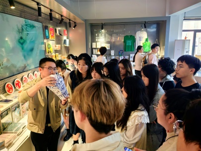 随后,学生们来到“城市礼物”文创设计中心,中心负责人王伟教授带领学生们进行了深入的交流与互动。艺术与设计学院的学生通过所学专业知识,围绕荆楚文化的主题,设计了一系列富有创意的文创产品。这些产品涵盖了生活用品、装饰品、文具用品等多个领域,既体现了荆楚文化的独特魅力,又符合现代审美和实用需求。作品中从灵感来源、设计思路到市场反馈,每一个细节都透露出对传统文化的尊重与对创新的追求。王伟教授在接下来的讲座上分享了优秀学生的作品和创作经验,鼓励同学们要深入探索中国优秀传统文化,敢于创新。通过此次交流分享,学生们纷纷表示,这次探访不仅拓宽了他们的视野,更激发了他们对荆楚文化文创设计的浓厚兴趣与创作热情。