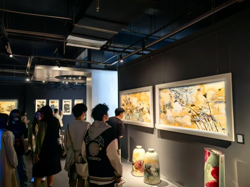 动画专业的学生们,在学院老师的带领下,带着对荆楚文化的浓厚兴趣与对文创设计的无限憧憬,走进了这个充满创意与灵感的空间。他们首先参观了艺术与科学研究中心,这里陈列着管家庆教授创作的各式各样的高温釉彩作品,从精美的艺术品到文创产品的应用,每一件作品都承载着对传统文化和技艺的深刻理解与现代设计的独特视角。