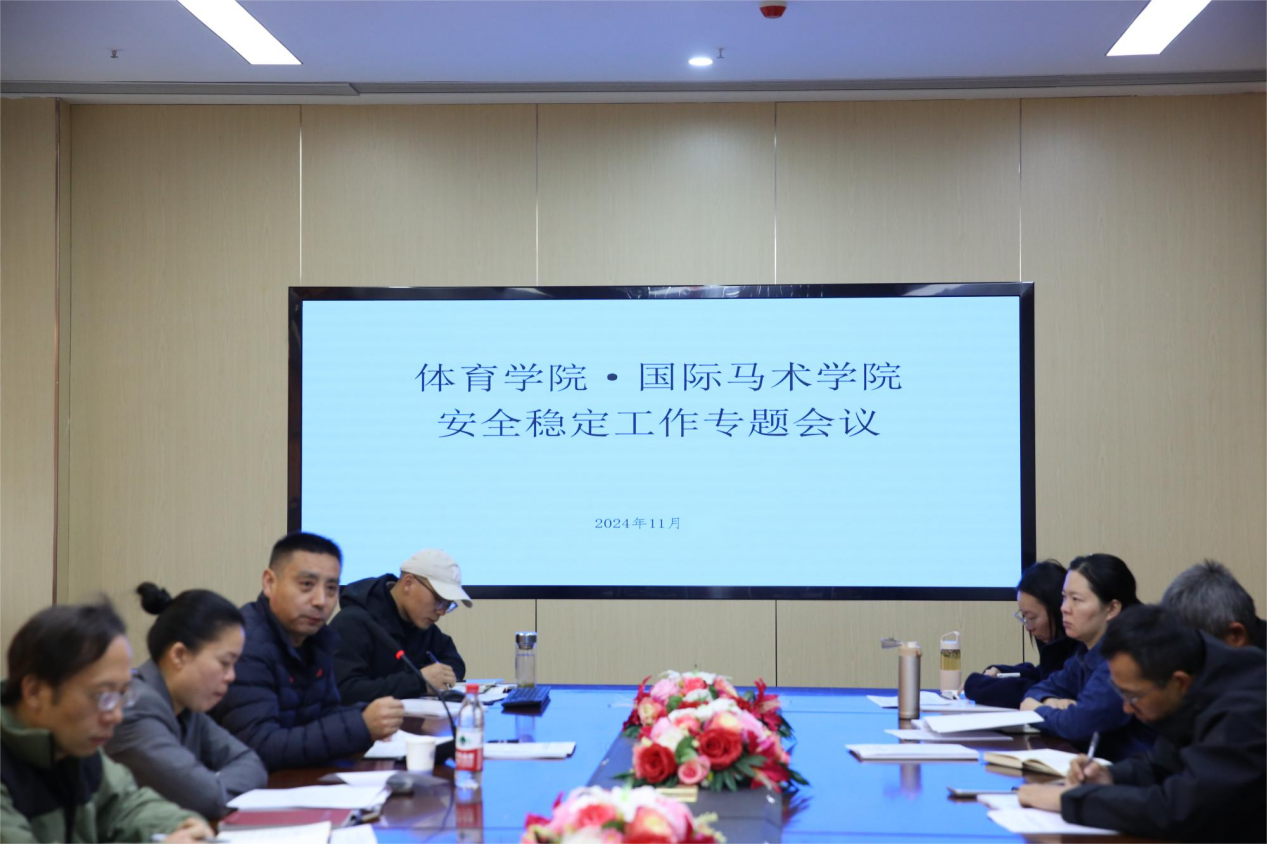 本网讯 11月20日上午,体育学院·国际马术学院召开安全稳定工作专题会议。学院领导班子、各系部主任、支部书记及全体辅导员均参加了此次会议,会议由学院党委书记吴媛媛主持。